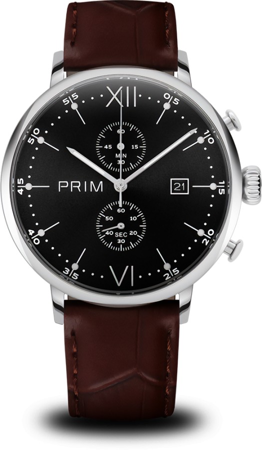 PRIM Chronoscope 25 Roman jsou elegantní a funkční hodinky s chronografem, které spojují společenský styl s minimalistickým designem. Minimalistický vzhled hodinek je navržen v typickém Bauhaus stylu s tištěnými indexy, které doplňují jemné luminiscenční prvky. Luminiscenční body na hodinových indexech a luminiscenční nátěr na hodinové a minutové ručičce zajišťují snadné čtení času i za šera. Hodinky jsou vybaveny osvědčeným japonským quartzovým strojkem OS11 a chráněny kvalitním dvojitě klenutým safírovým antireflexním sklíčkem, což dodává na jejich odolnosti a životnosti.
