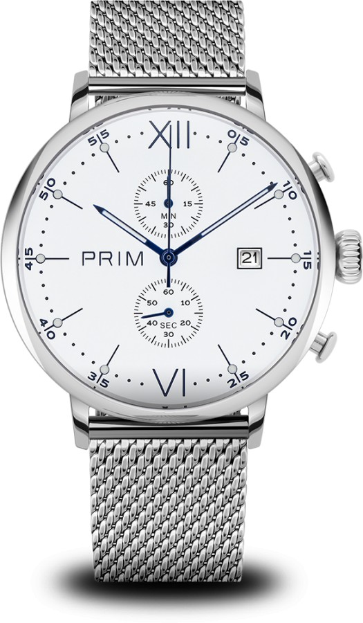 PRIM Chronoscope 25 Roman jsou elegantní a funkční hodinky s chronografem, které spojují společenský styl s minimalistickým designem. Minimalistický vzhled hodinek je navržen v typickém Bauhaus stylu s tištěnými indexy, které doplňují jemné luminiscenční prvky. Luminiscenční body na hodinových indexech a luminiscenční nátěr na hodinové a minutové ručičce zajišťují snadné čtení času i za šera. Hodinky jsou vybaveny osvědčeným japonským quartzovým strojkem OS11 a chráněny kvalitním dvojitě klenutým safírovým antireflexním sklíčkem, což dodává na jejich odolnosti a životnosti.