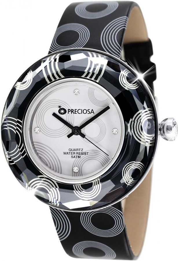 Uvnitř prstence se pod minerálním sklem odolným proti poškrábání nachází číselník osazený reliéfními indexy s kubickou zirkonií. Netradičně tvarovanou originální korunku zdobí velký broušený český krystal. Eleganci modelu vhodně dotváří kvalitní řemínek zakončený klasickou sponou. Základní část pouzder je vyrobena z ušlechtilé nerezové oceli s vodotěsností 5 ATM. O přesnost chodu se stará švýcarský quartzový strojek.