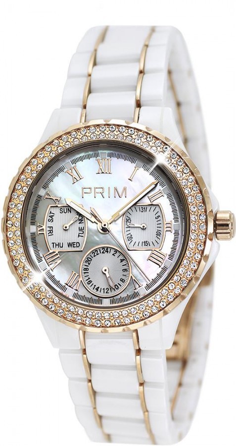 Dámské keramické multifunkční hodinky. Do bílého keramického pouzdra s průměrem 40 mm je použit quartzový strojek kalibr 6P29. Dno je z ušlechtilé nerezové oceli 316L uzavřené čtveřicí šroubků. Vodotěsnost 5 ATM zaručuje odolnost proti vodě při běžném použití. V otočném kroužku s jednosměrnou aretací je vsazeno přes 120 krystalů Swarovski, kroužek je navíc upraven technologií IPGR dodávající odstín růžového zlacení. Pod minerálním sklíčkem byl použit číselník z pravé přírodní perleti měnící odstín dle dopadu světla. V čítači na pozici 3 hod. je umístěn datum. Den v týdnu a 24hodinový duální čas, jsou umístěny v čítačích na pozici 9 resp. 6 hodin . Luminiscenční vrstvou jsou pokryty, jak hlavní růžově zlacené hodinové ručky, tak i ručky čítačů. Náramek je vyroben rovněž z keramiky zpevněn ocelovými prvky. Spona tzv. motýlek dává vyniknout keramickému náramku. Tyto hodinky jsou dodávány v luxusní krabičce se záručním listem a návodem.