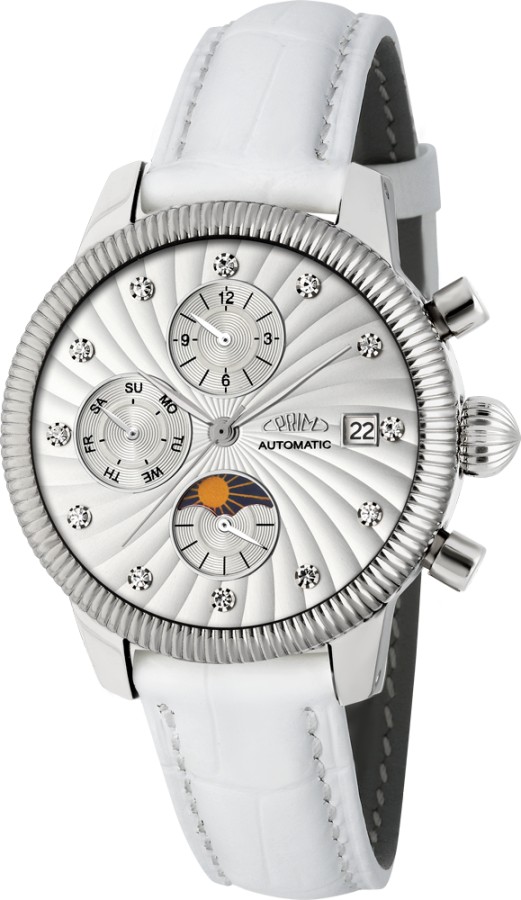 PRIM Fashion jsou dámské automatické multifunkční hodinky. Elegantní a velmi propracované pouzdro je vyrobeno z ušlechtilé nerezové oceli 316 L upravené kartáčováním,vyleštěné do vysokého lesku. Hodinky jsou uzavřené safírovým konkávním sklem, které přidává hodinkám na odolnosti. Trendy barevný či reliéfní ciferník s datumem, dnem v týdnu, měsícem a 24 hodinový číselník s fází dne a noci. Hodinky jsou uzavřené šroubovacím dýnkem s popisem hodinek. Jedná se o jemný strojek, proto je třeba dbát na šetrné zacházení. Mechanismus se natahuje automaticky z pohybů Vašeho zápěstí při běžném nošení nebo mechanickým otáčením korunky. Tyto hodinky jsou dodány v elegantní krabičce spolu se záručním listem.
