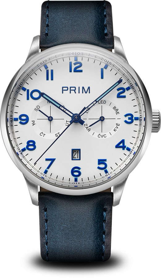 PRIM MANAGER 2025 – sportovně elegantní model v různých barevných provedeních. Spolehlivý automat s kalibrem Miyota 9122, safírovým sklem a podsvícenými indexy, který zaujme na každé pánské ruce.