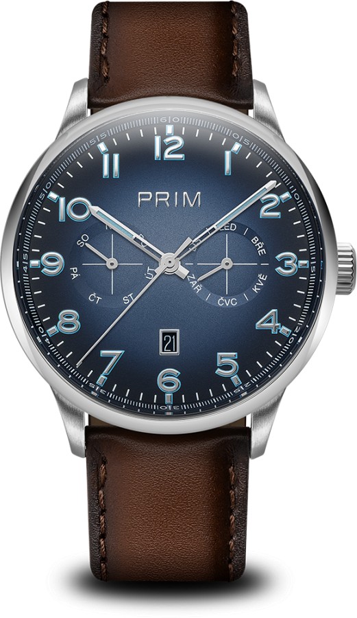 PRIM MANAGER 2025 – sportovně elegantní model v různých barevných provedeních. Spolehlivý automat s kalibrem Miyota 9122, safírovým sklem a podsvícenými indexy, který zaujme na každé pánské ruce.