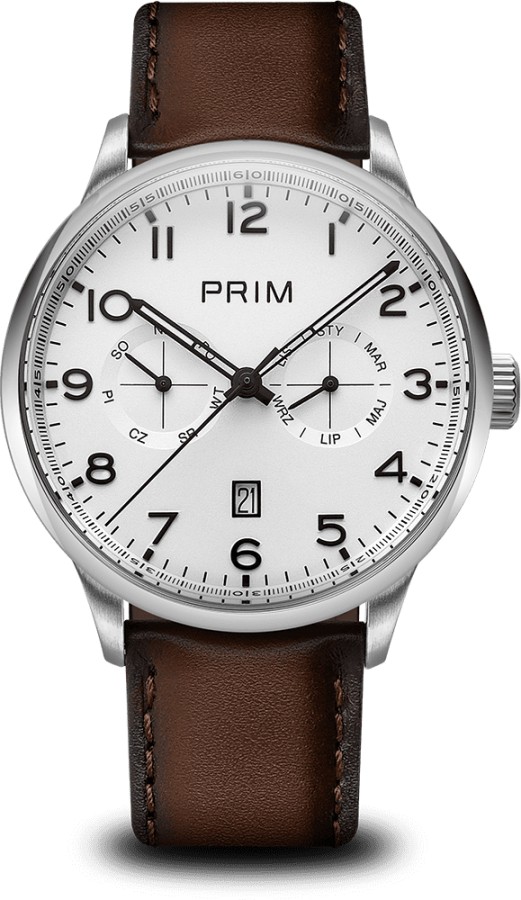 PRIM MANAGER 2025 – sportovně elegantní model v různých barevných provedeních. Spolehlivý automat s kalibrem Miyota 9122, safírovým sklem a podsvícenými indexy, který zaujme na každé pánské ruce.