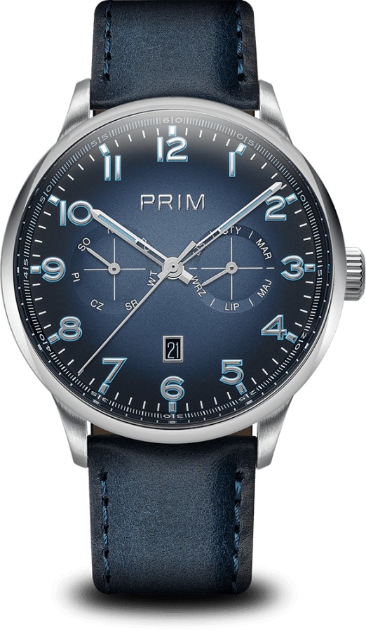 PRIM MANAGER 2025 – sportovně elegantní model v různých barevných provedeních. Spolehlivý automat s kalibrem Miyota 9122, safírovým sklem a podsvícenými indexy, který zaujme na každé pánské ruce.