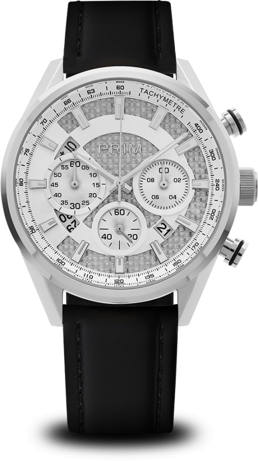 Populární model PRIM Master 25 s leštěným pouzdrem a moderním ciferníkem s chronografem oživí a zvýrazní image svého majitele. PRIM Master 25 – dokonalá rovnováha mezi sportovní dynamikou a nadčasovou elegancí, nyní s ciferníkem z uhlíkového vlákna (karbonu) pro ještě exkluzivnější vzhled. Hodinky, které podtrhnou váš styl a zaujmou na první pohled, doplňuje kvalitní prošívaný kožený řemínek. Každý kus je dodáván se svým výrobním číslem.