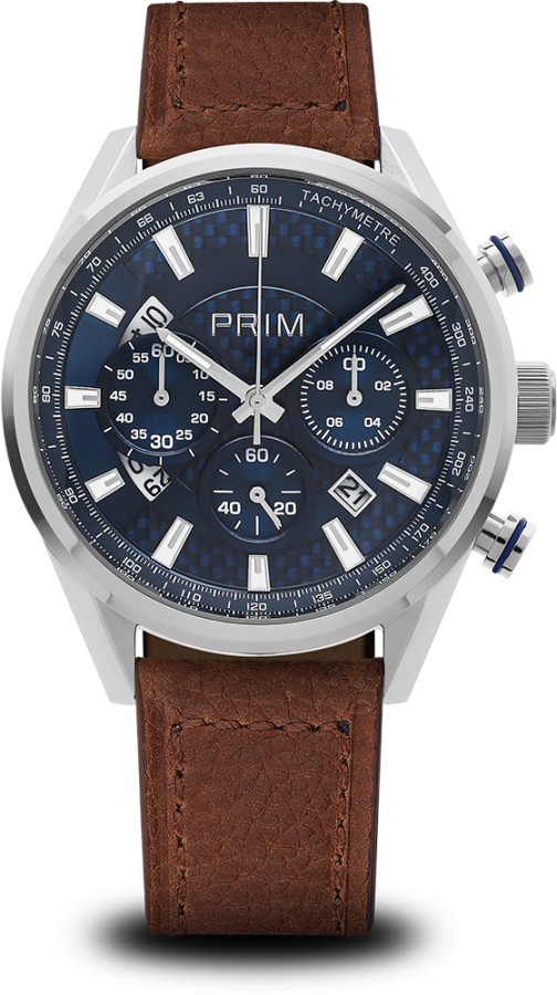 Populární model PRIM Master 25 s leštěným pouzdrem a moderním ciferníkem s chronografem oživí a zvýrazní image svého majitele. PRIM Master 25 – dokonalá rovnováha mezi sportovní dynamikou a nadčasovou elegancí, nyní s ciferníkem z uhlíkového vlákna (karbonu) pro ještě exkluzivnější vzhled. Hodinky, které podtrhnou váš styl a zaujmou na první pohled, doplňuje kvalitní prošívaný kožený řemínek. Každý kus je dodáván se svým výrobním číslem.