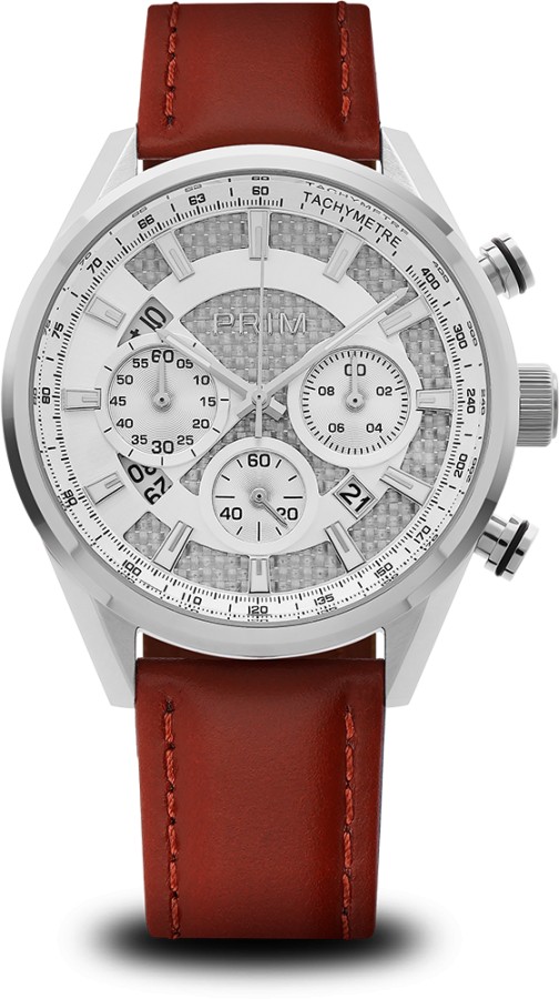 Populární model PRIM Master 25 s leštěným pouzdrem a moderním ciferníkem s chronografem oživí a zvýrazní image svého majitele. PRIM Master 25 – dokonalá rovnováha mezi sportovní dynamikou a nadčasovou elegancí, nyní s ciferníkem z uhlíkového vlákna (karbonu) pro ještě exkluzivnější vzhled. Hodinky, které podtrhnou váš styl a zaujmou na první pohled, doplňuje kvalitní prošívaný kožený řemínek. Každý kus je dodáván se svým výrobním číslem.