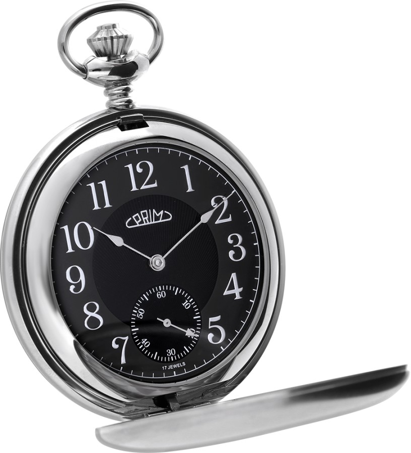 Unikátní dvouplášťové kapesní hodinky PRIM Pocket Lux vyrobené z broušené nerezové oceli 316L. Model má originálně navržený ciferník a ten chrání kvalitní minerální sklíčko. *model se perfektně hodí na individualizaci (cnc gravírování monogramu či loga)