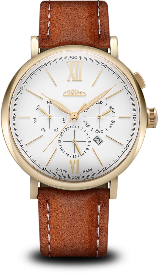 PRIM Retro Elegance 2025 – elegantní pánské hodinky s kalibrem Miyota 9120, safírovým vypouklým sklem, průhledným dýnkem a koženým řemínkem v různých barvách. Klasika v moderním pojetí. Nová kolekce pánských hodinek, která spojuje čistý design s precizní řemeslo.