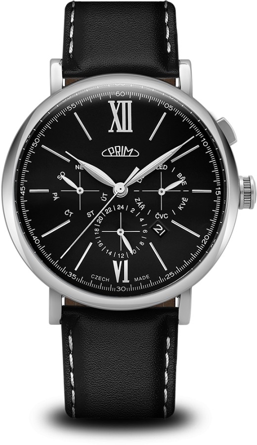 PRIM Retro Elegance 2025 – elegantní pánské hodinky s kalibrem Miyota 9120, safírovým vypouklým sklem, průhledným dýnkem a koženým řemínkem v různých barvách. Klasika v moderním pojetí. Nová kolekce pánských hodinek, která spojuje čistý design s precizní řemeslo.