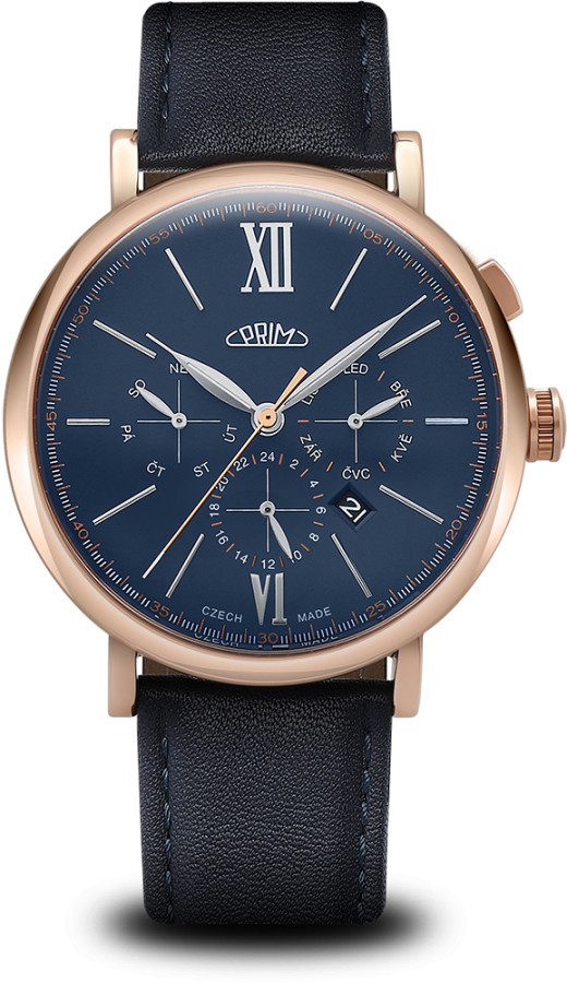 PRIM Retro Elegance 2025 – elegantní pánské hodinky s kalibrem Miyota 9120, safírovým vypouklým sklem, průhledným dýnkem a koženým řemínkem v různých barvách. Klasika v moderním pojetí. Nová kolekce pánských hodinek, která spojuje čistý design s precizní řemeslo.